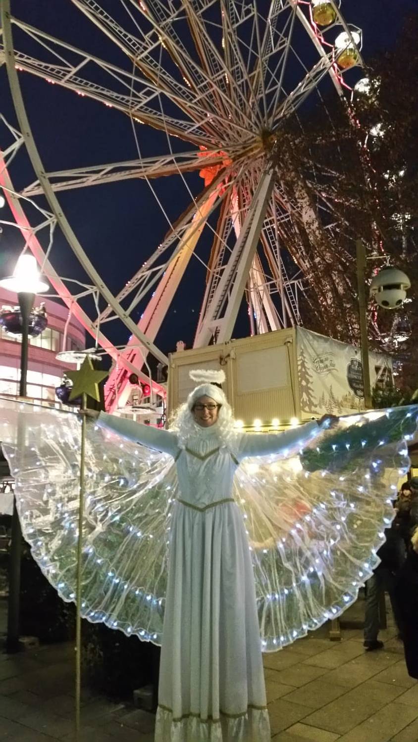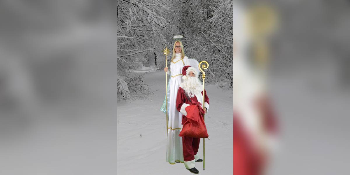 Wählen Sie zwischen dem Weihnachtsmann oder einen Weihnachtsengel auf Stelzen.