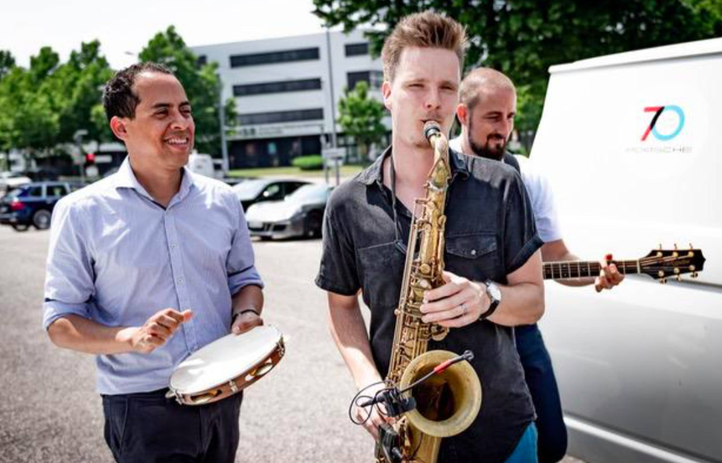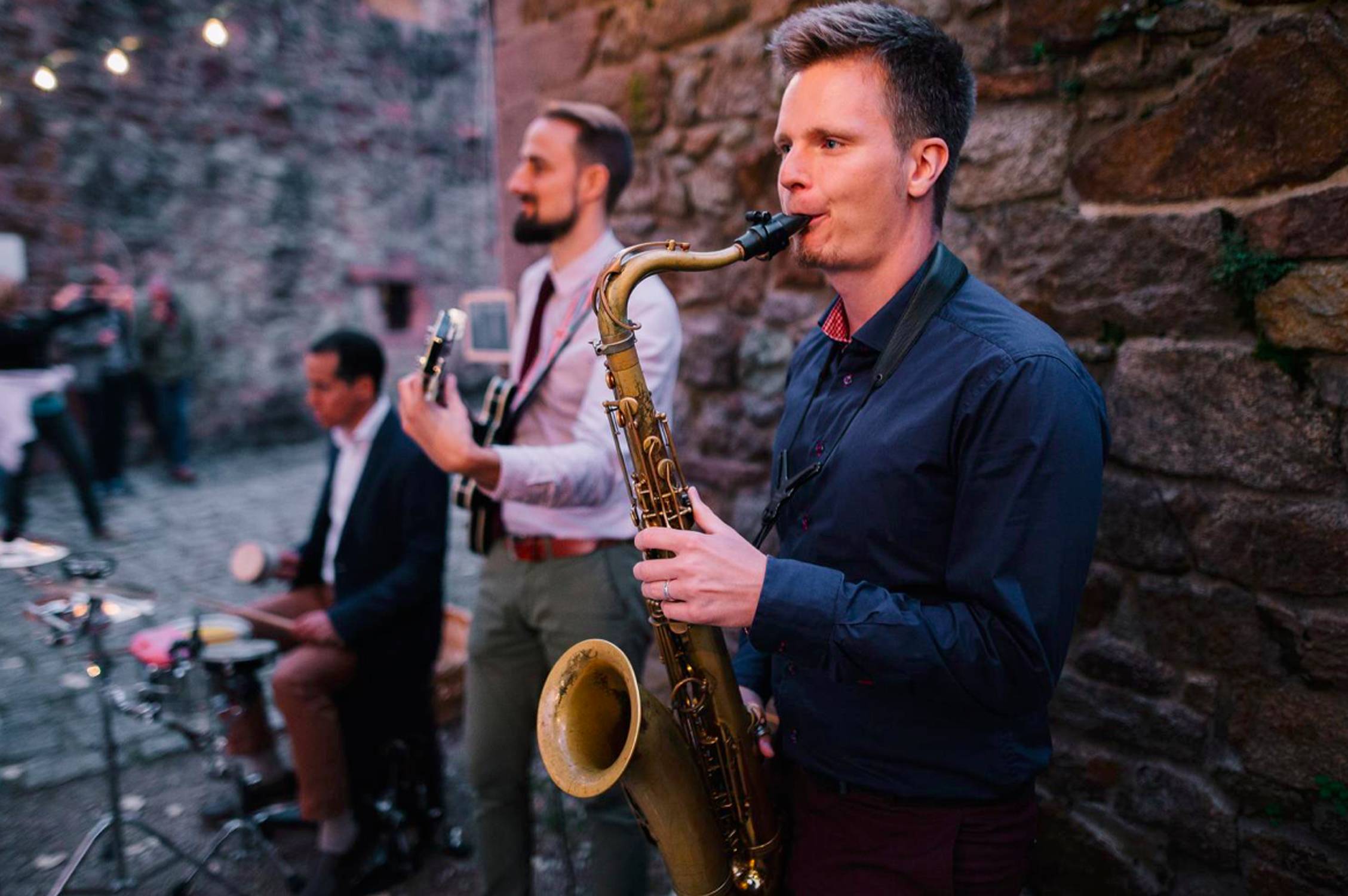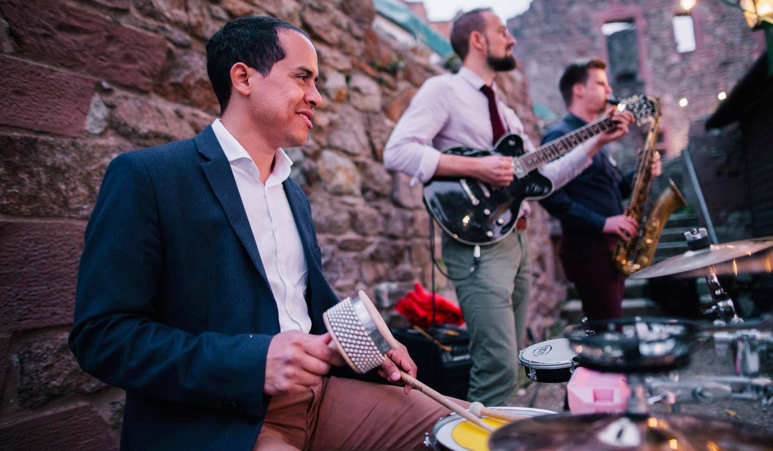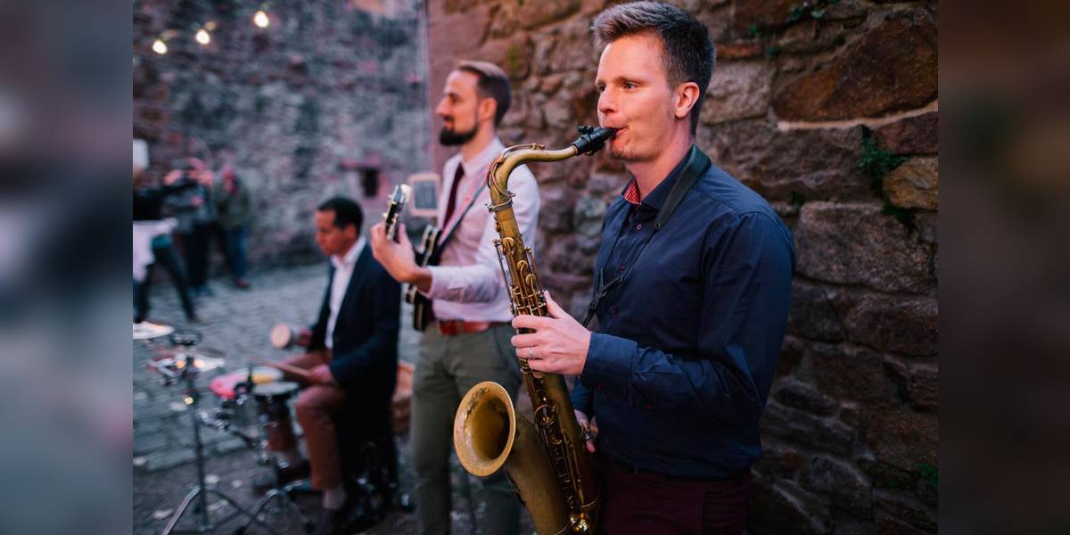 In unserer eingespielten Besetzung mit Saxophon, Gitarre und Percussion verstehen wir uns blind und sind maximal flexibel!