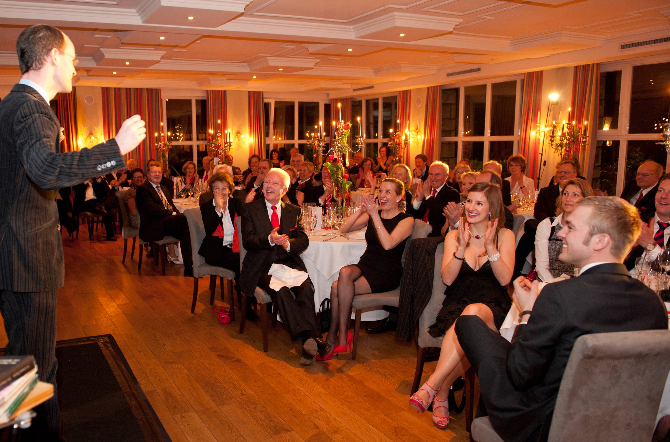 Vom Kurzauftritt bis zur abendfüllenden Show, von der Privatfeier bis zum großen Firmenevent – das Programm wird für Ihren Anlass maßgeschneidert. Für Galaveranstaltungen empfehlen wir eine interaktive Bühnenshow von ca. 45 bis 60 Minuten. Alle Darbietungen sind für internationales Publikum geeignet und auch auf Englischer und Spanischer Sprache möglich.