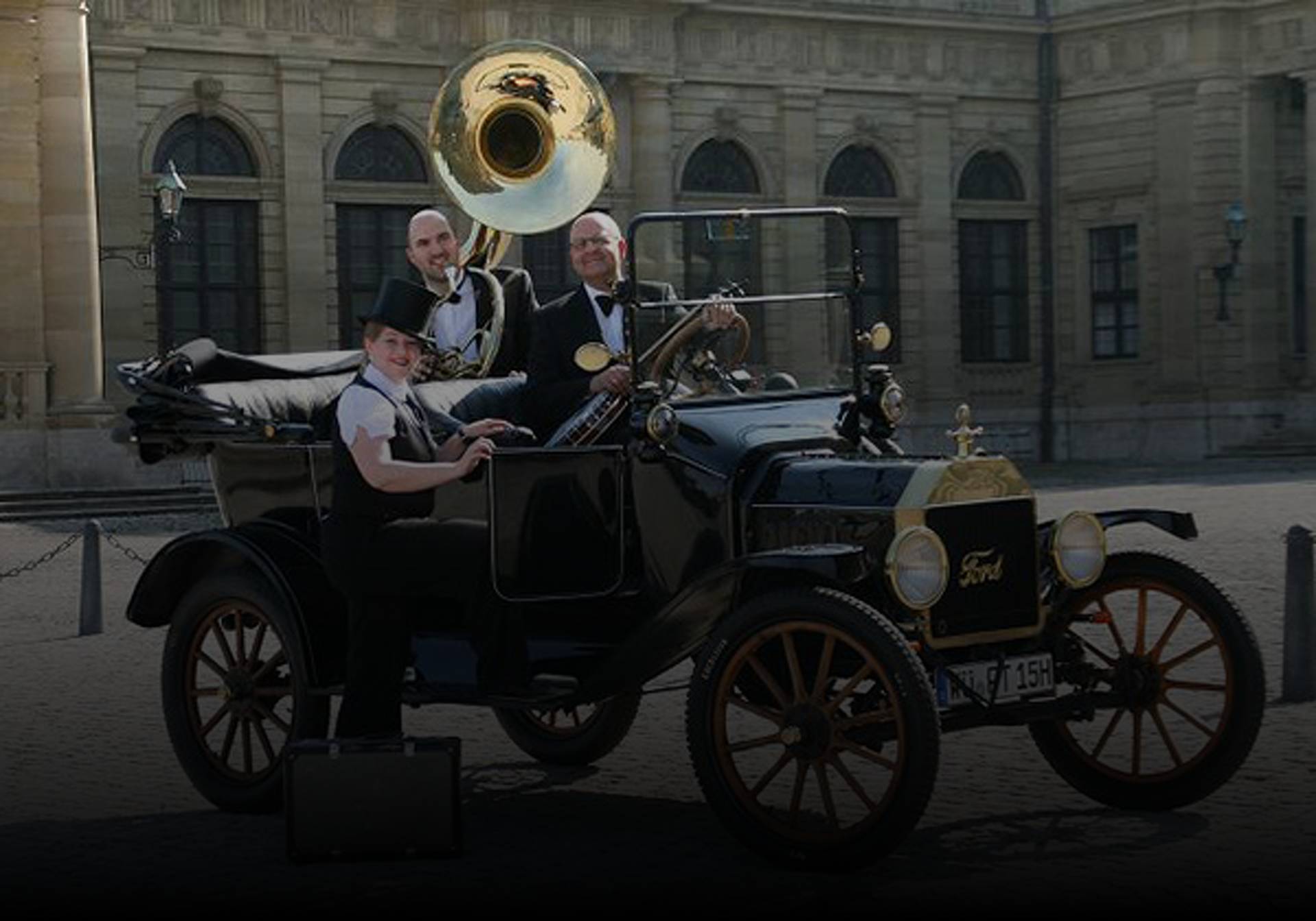 Eingängige Melodien, Liedtexte mit scharfem Wortwitz und verruchtem Hintersinn – das ungewöhnliche Trio aus Würzburg bringt mit Swing, Fox und Schlagern der zwanziger Jahre das ausschweifende Lebensgefühl der Grammophon-Ära zurück. Musik einer Epoche, als Kunst und Kultur den politisch-aggressiven Realismus mit einem bittersüßen Glanz verhüllten. Unter dem goldenen und großen Trichter des brummenden Sousaphons bezaubern Jochen Rothermel, die Sopranistin Nicole Schömig und Werner Küspert an Gitarre und Banjo.