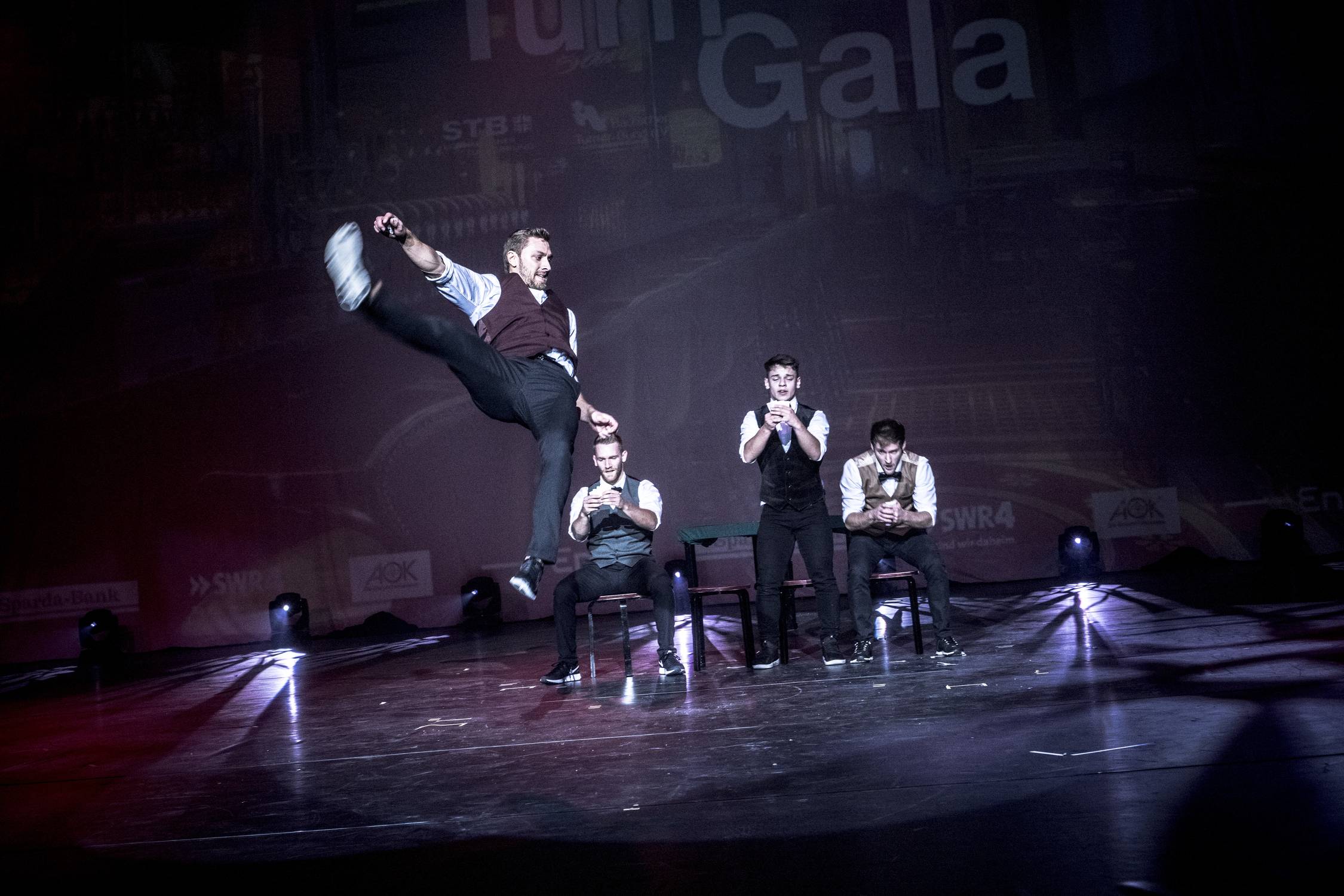 Die Tricking Show tritt standardmäßig mit vier Artisten auf. Je nach Anlass und Kundenwunsch sind 2-6 Performer problemlos möglich. Sprechen Sie uns für Beratung gerne an, wir benötigen 5x5 m Platz auf der Bühne für unsere Sprungelemente, sind jedoch flexibel in der Planung.