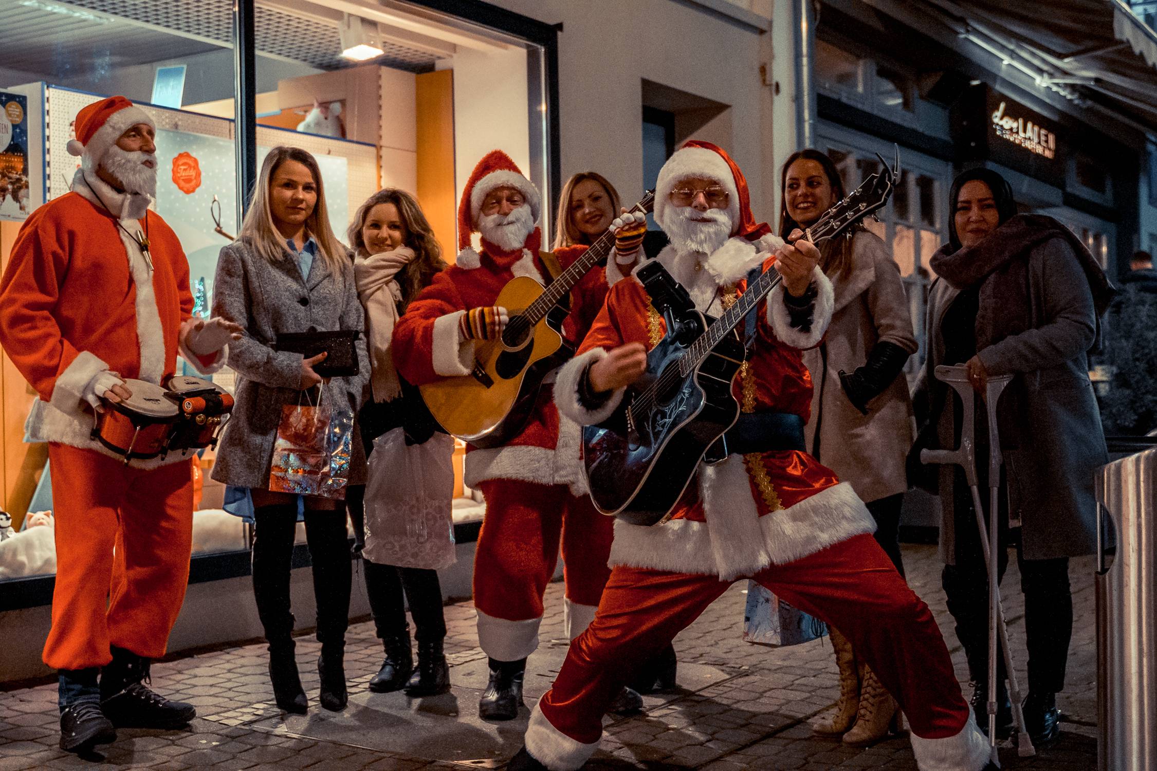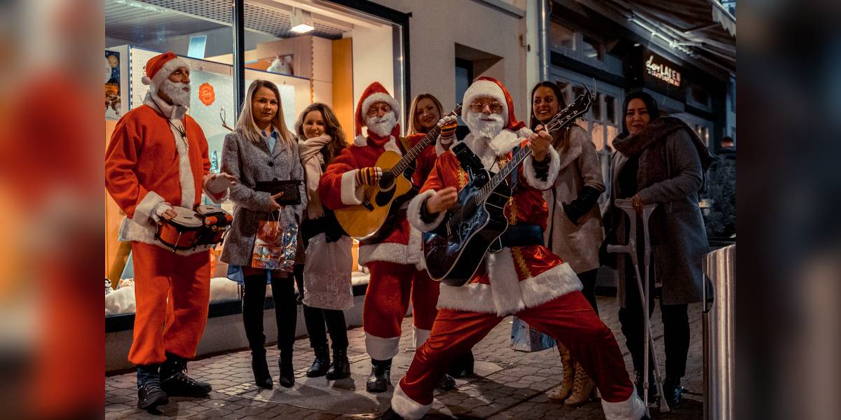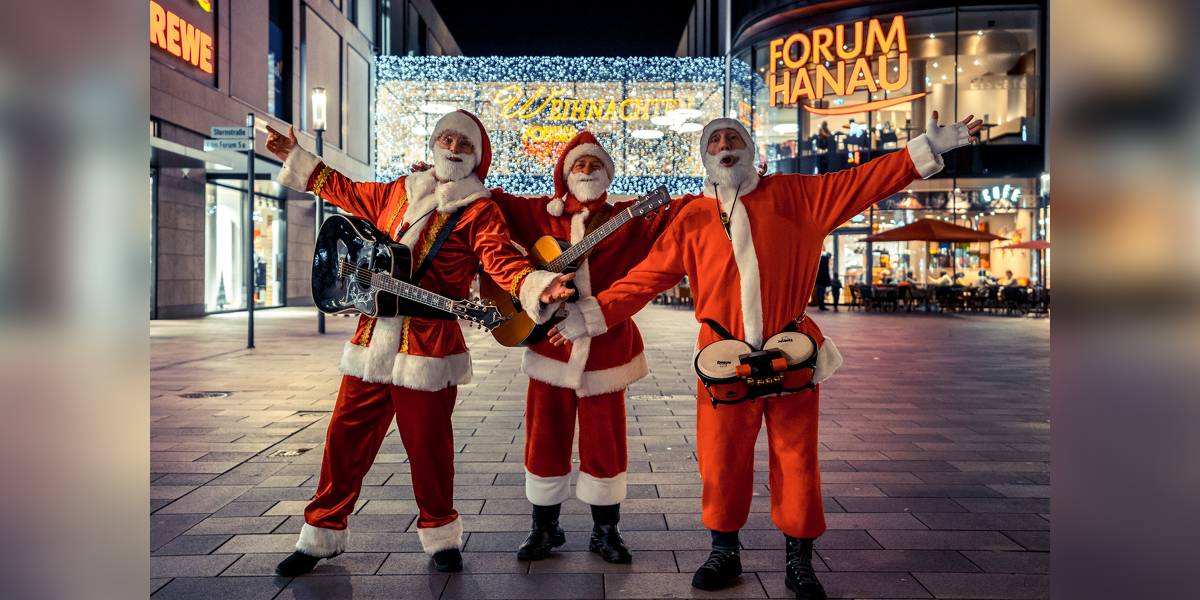 Die beliebtesten Weihnachtslieder live & unplugged: keine Mikrophone, keine Verstärker, keine Technik - die Walking Santas sind das Highlight auf der Firmen-Weihnachtsfeier, dem Weihnachtsmarkt oder Nikolausfest.